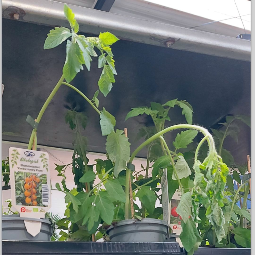 Tomatplanter er følsomme over for lave temperaturer. Selv på dage med flot solskin kan det stadig være koldt, og står planterne også køligt om natten, kan det påvirke både rodudvikling og trivsel. Vores erfaring er, at en plante godt kan se fin ud, når man køber den, selvom den allerede har været udsat for noget, der kan give problemer senere.