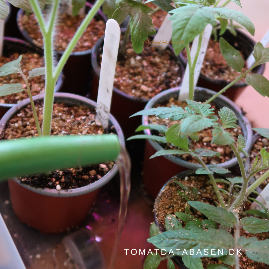 Når planterne kommer ind fra drivhuset og stilles køligt, med varme nedefra, vander vi nedefra med lunkent vand. På den måde forsøger vi at støtte både rodsystem og planteudvikling uden at overforkæle planterne.