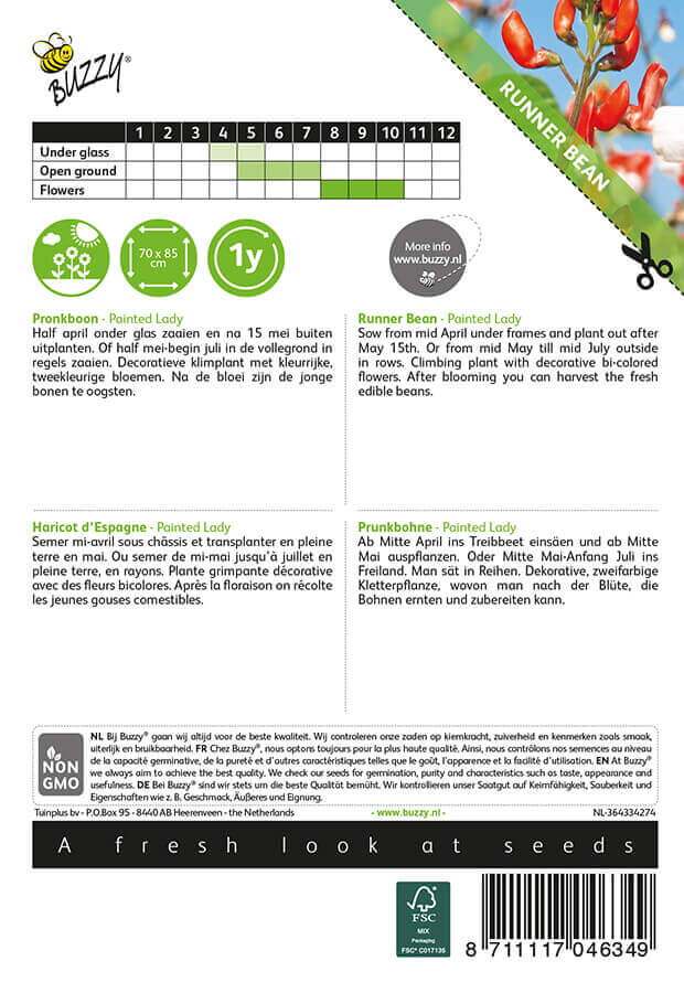 Buzzy® Phaseolus, Runner Bean Painted Lady. Indeholder ca: 20 g