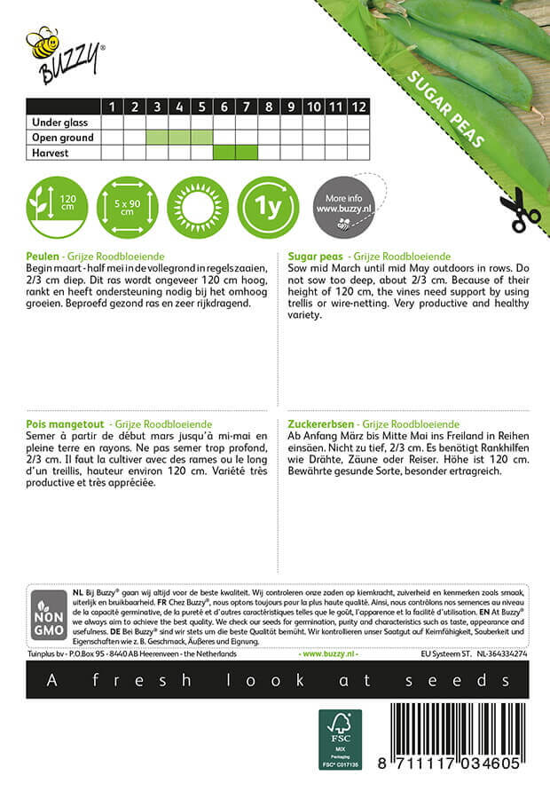 Buzzy® Sugar Peas ‘Grey Redflowering’