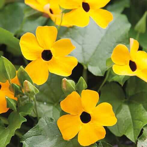 Black-Eyed Susan er en dekorativ og hurtigtvoksende slyngplante med karakteristiske gule blomster og mørkt centrum. Planten er ideel til krukker, altankasser og espalier og giver et frodigt og farverigt udtryk hele sommeren. Den trives bedst på et solrigt og beskyttet voksested.