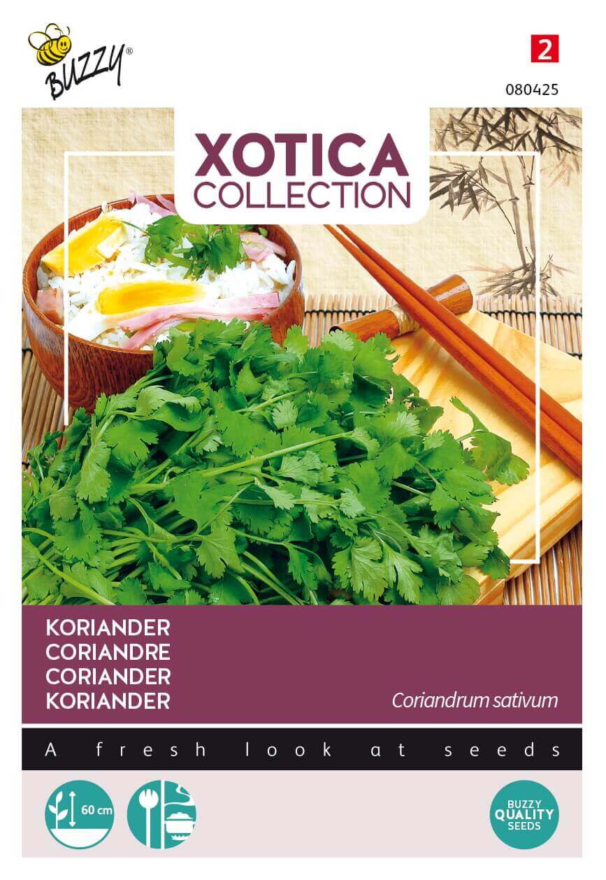 Koriander, også kendt som cilantro, er en aromatisk krydderurt med friske, grønne blade og en karakteristisk smag, der er uundværlig i mange asiatiske, mellemøstlige og sydamerikanske retter. Bladene bruges friske og giver et tydeligt, citrusagtigt og krydret præg til maden.
