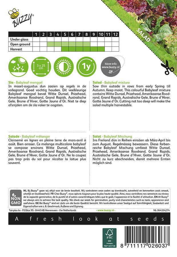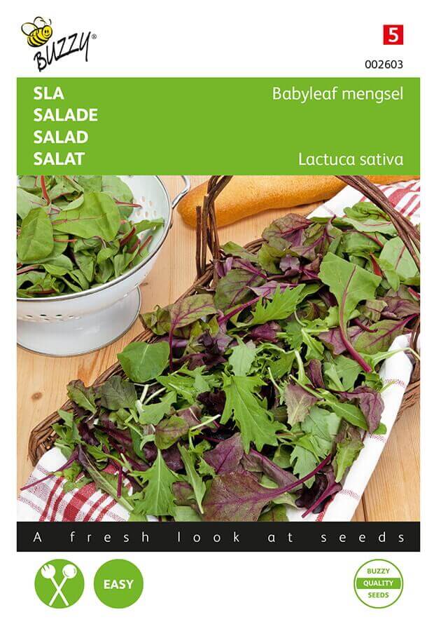 Denne farverige Babyleaf-blanding indeholder en række forskellige sorter, der tilsammen giver en smuk og velsmagende salat.