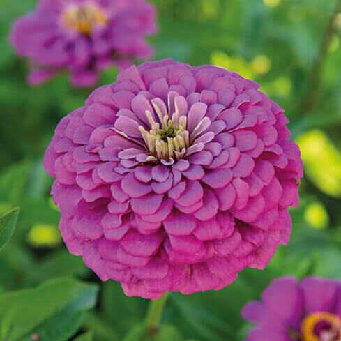 Zinnia Lavendel er en klassisk og meget dekorativ sommerblomst med store, fyldte blomster i en smuk lilla-lavendelfarve. Blomsterne sidder på kraftige stængler og er derfor særdeles velegnede som snitblomster. Jo mere man plukker, desto flere blomster danner planten.